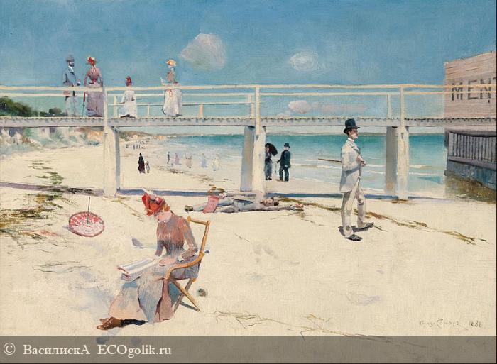Искала для отзыва картину с золотым песчаным пляжем и нашла вот эту. Она называется «Выходные в Ментоне»