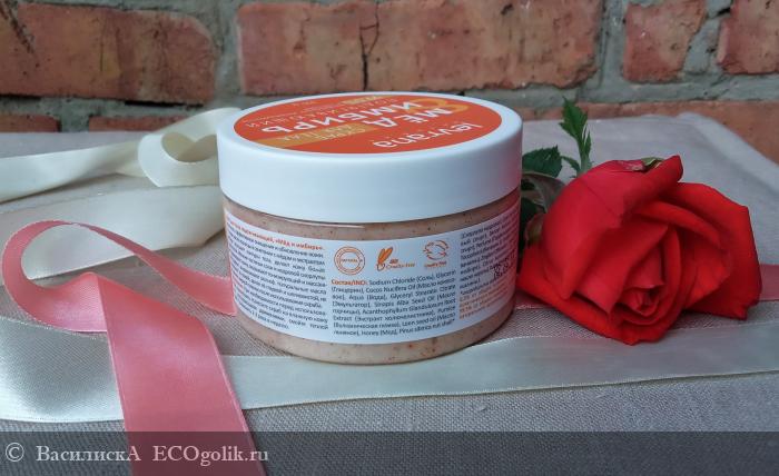 . Скраб Мед и имбирь не для расслабления, а, наоборот, для обновления и выравнивания рельефа кожи. Чтобы убедиться, что это так, посмотрим состав.