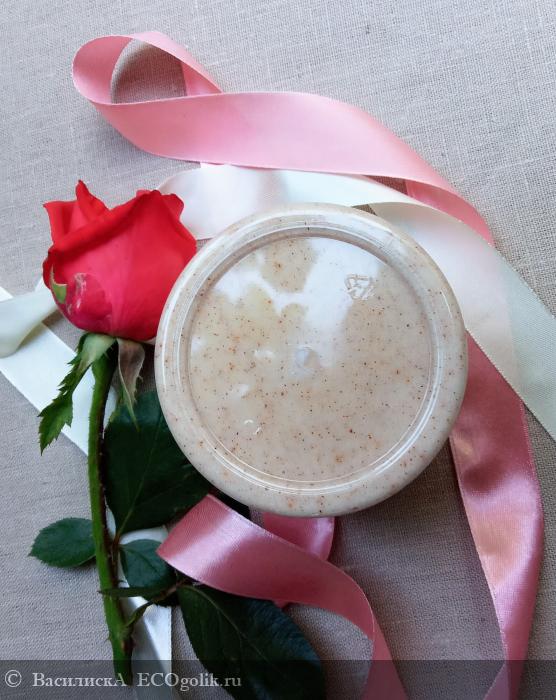 В контакте с водой немного эмульгируется и скрабирует кожу так долго, как вы того хотите, делая ее гладкой и нежной