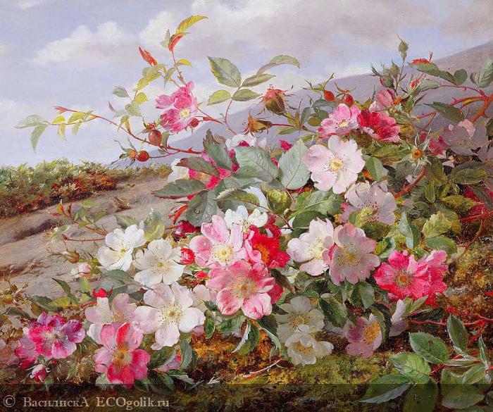 Роза москета — это шиповник красно-бурый. Не знаю, он ли изображен на этой картине, но, во всяком случае, здесь шиповник очень красивый!