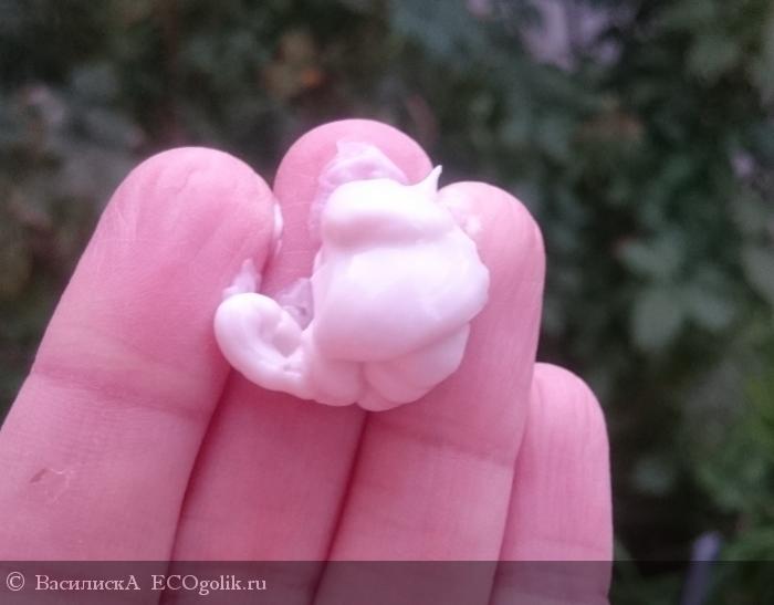 Маска богата также питательными и ухаживающими маслами, поэтому по виду больше всего похожа на крем, густой, белый с розоватым оттенком. Для защиты от любопытных отверстие дозатора закрывает защитная пластинка. Вытащить ее перед началом использования очень легко, а пристроить назад не представляется возможным. Очень удобное приспособление, говорю это как человек, который в свое время немало помучился с защитной пробочкой на упаковке продукции Сатива
