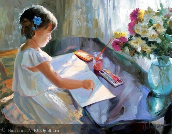В отзыве использована картина «Маленькая художница», которую написал российский художник Владимир Волегов (родился в 1957 году).
