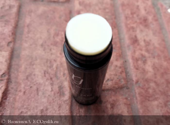 Эту защиту усиливает веганский воск рисовых отрубей, он же отвечает за плотную текстуру средства. При этом бальзам отлично ложится на губы, качественно увлажняет и питает их за счет содержания кокосового масла