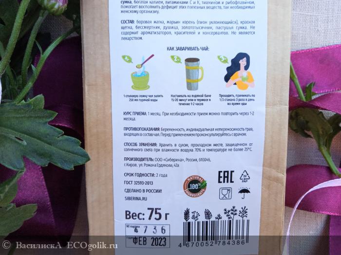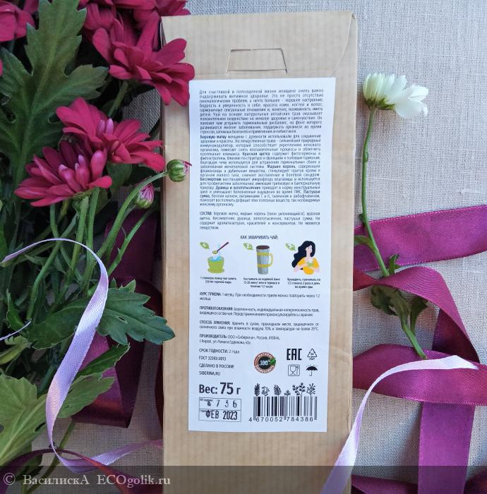 . Но у компании Сиберина тоже есть букет для прекрасных дам. Он немного необычный, но не менее полезный, чем тюльпаны, мимозы и прочая праздничная флора. Это натуральный травяной чай «Женское здоровье».