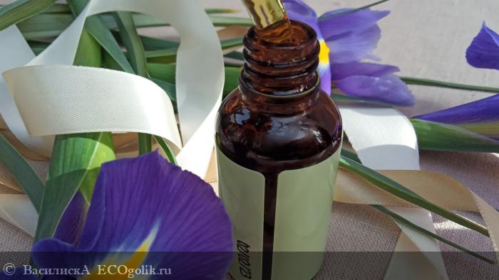 Удалив защитный стикер на крышке коробочки, достаем из нее пузырек из темно-коричневого медицинского стекла. Точь-в-точь такой же, как и у сыворотки для лица Увлажнение и лифтинг. На горлышке такая же пробка со встроенной пипеткой, и, что совсем непривычно, один и тот же объем - 30 мл