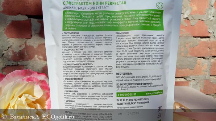 . Зато Perfect4u предлагает альгинатные маски в многоразовой упаковке, рассчитанные сразу на 12 применений. Одна из них – вот эта маска с экстрактом нони.