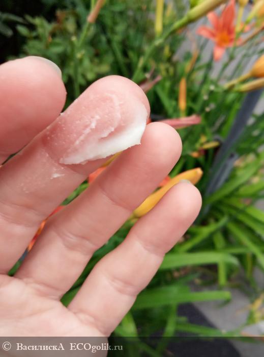 Дезодорант нужно отщипнуть в небольшом количестве пальцами и втереть в область подмышек. С виду такой способ кажется не самым удобным, но к нему быстро привыкаешь. Кремовая смесь легко распределяется по коже, а потери дезодоранта, оставшегося на пальцах, практически минимальны
