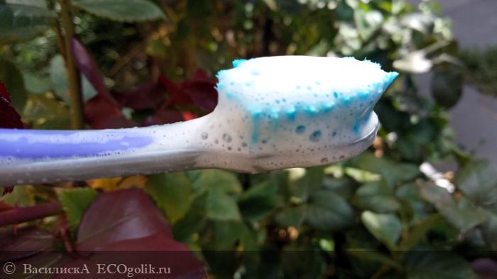 Значительных претензий к пасте Противокариесная вроде бы нет. Пенится она средне, как и большинство натуральных зубных паст, но хорошо удаляет зубной налет и освежает дыхание
