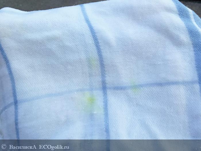 Для обработки пятна нужно примерно 5 мл, то есть треть, я же взяла меньше. Пришлось повторить операцию и выдержать пятновыводитель уже дольше - 30 минут (максимальное время выдержки).