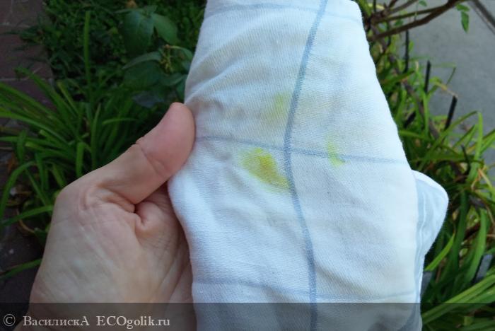 Не растворился он и через 15 минут выдержки на ткани. За это время пятно побледнело, но не исчезло совсем