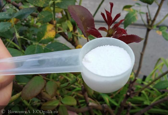 Удаляем с банки защитную полоску и открываем крышку. Внутри находятся вот такие мелкие белые гранулы, похожие на снежную крупу, и прозрачная мерная ложка.