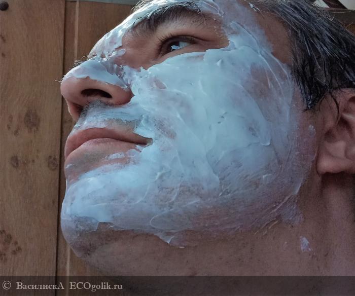 . Молодой человек наносит маску толстым слоем. В первый и мы последовали его примеру. В подтверждение привожу фото маски на лице моего друга.