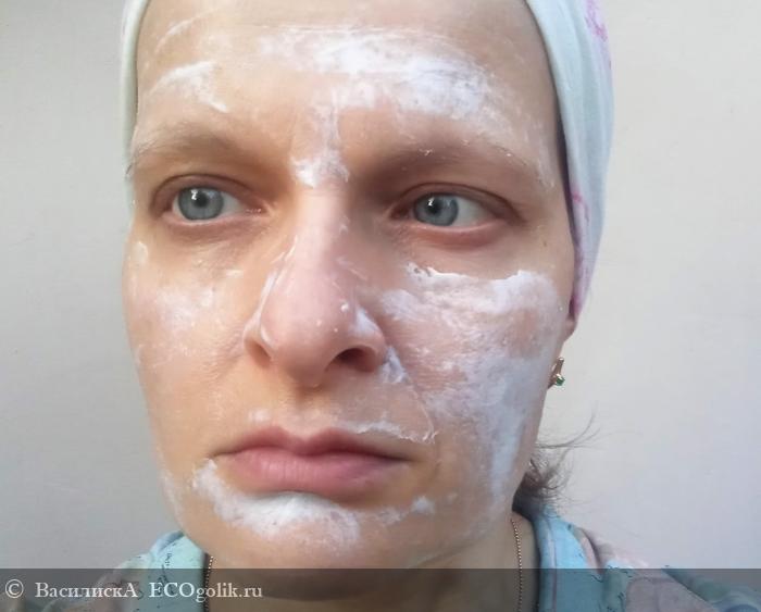 Глина-то есть, но по процессу применения маски это не заметно вообще. Маска не высыхает, в увлажнении гидролатом или иной жидкостью не нуждается. Вы можете держать ее положенные 5-10 минут, а можете и превысить это время – все равно не пересохнет. Больше того, удалять ее нужно именно так, как написано в инструкции: обязательно вначале снять излишки салфеткой, и только потом смывать теплой водой.