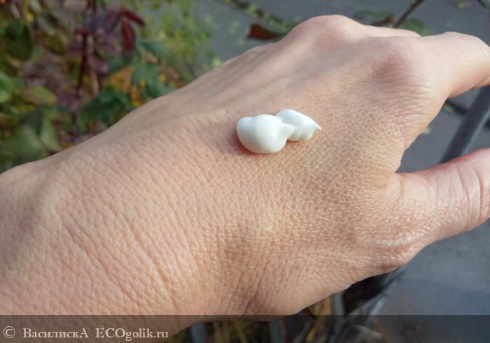 И сама маска очень похожа на крем для лица, белоснежный и густой. Избыточной жирностью Аква-эксперт не отличается, поэтому её очень комфортно наносить на очищенное лицо.