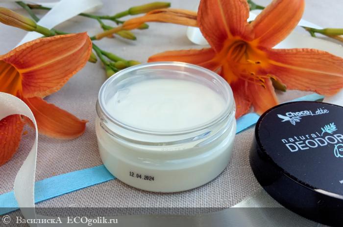 Бренд не использует даже соли алюминия. Этот компонент считается спорным, и, хотя многие производители эко-сегмента делают дезодоранты на квасцах, TM ChocoLatte его не использует. Основу део-пасты составляют сода и кукурузный крахмал, поглощающие влагу. Оксид цинка подавляет деятельность бактерий, вызывающих неприятный запах, а также помогает заживлению ран. Антимикробный и противовоспалительный эффект оказывают экстракты ромашки, шиповника, мяты и шалфея. Не блокируют потовые железы и косметические масла, входящие в состав дезодоранта, даже кокосовое масло, хотя оно и считается комедогенным. Тем не менее никаких воспалений или прыщиков на коже подмышек применение део-пасты не вызывает.