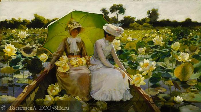 В отзыве использована картина «Лотосы», которую написал в 1888 году американский художник Чарльз Кортни Карран (1861 - 1942)