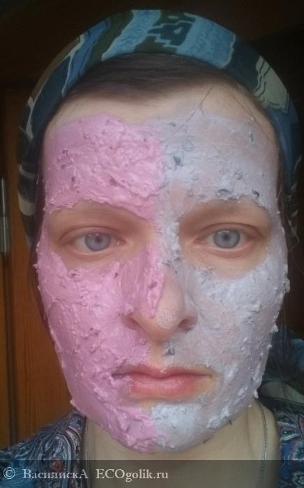 За время выдержки 10-15 минут впитывается «фиолетовая» маска интенсивнее, чем «розовая», подсыхает быстрее. Правда. ее оставалось не очень много, и слой вышел тоньше