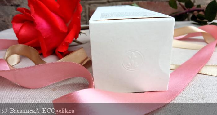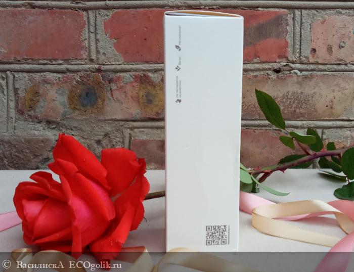 Этикетка тоже обошлась без ярких цветов, её украшают только три светлых мазка, как будто сделанных акварельной краской. Зато и на коробочке, и на флаконе много места отдано под описание состава и принципа действия продукта