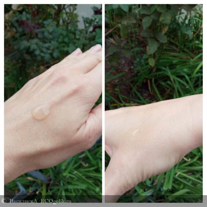 Приспособление интересное, но для упаковки геля Индекс Натуральности не столь уж обязательное. Во-первых, в начале использования дозатор ходит туговато, и содержимое так сразу из него не польется. Во-вторых, текстура содержимого такая, что вылиться ему не так уж легко. Это самый настоящий гель, прозрачный и густой, капля хорошо держит форму и не растекается по руке