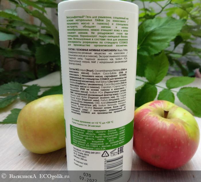 Тех, кто переходит на натуральную косметику, часто расстраивает то, что «зеленые» шампуни и гели плохо пенятся. Средство приходится все время подливать, глядь — а бутылка уже пустая. Бессульфатный гель для умывания из линейки Индекс Натуральности этого недостатка лишен полностью.