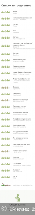 вода, Rosa Odorata (розы чайной) Flower Water, Melissa Officinalis (мелиссы) Flower Water, Pinus Sylvestris (сосны) Flower Water, Papaver Somniferum Seed (семян мака) Oil, Argania Spinosa Kernel (арганы) Oil, Glyceryl Citrate/Lactate/Linoleate/Oleate*, Betaine (натуральный бетаин), Isoamyl Laurate / Isoamyl Cocoate*, Bifida Ferment Lysate (комплекс лизатов бифидобактерий), Lactobacillus Ferment Lysate (комплекс лизатов лактобактерий), Squalane (сквалан из сахарного тростника), Hydrogenated Ethylhexyl Olivate / Hydrogenated Olive Oil Unsaponifiables*, Panthenol (Д-пантенол), Benzyl Alcohol / Glyceryl Laurate*, Tocopherol (витамин Е), Amorphophallus Konjac Root Powder (конжаковый глюкоманнан), Rosa Affinis Rubiginosa Oil (эфирное масло розы), Sodium Hyaluronate (гиалуроновая кислота), Linoleic Acid / Linolenic Acid (витамин F), Lactic Acid (молочная кислота), SC-CO2 Extract: Cinnamomum (коры корицы), Hippophae Rhamnoides (плодов облепихи), Amaranthus (амаранта), Tilia Cordata (цветов липы).