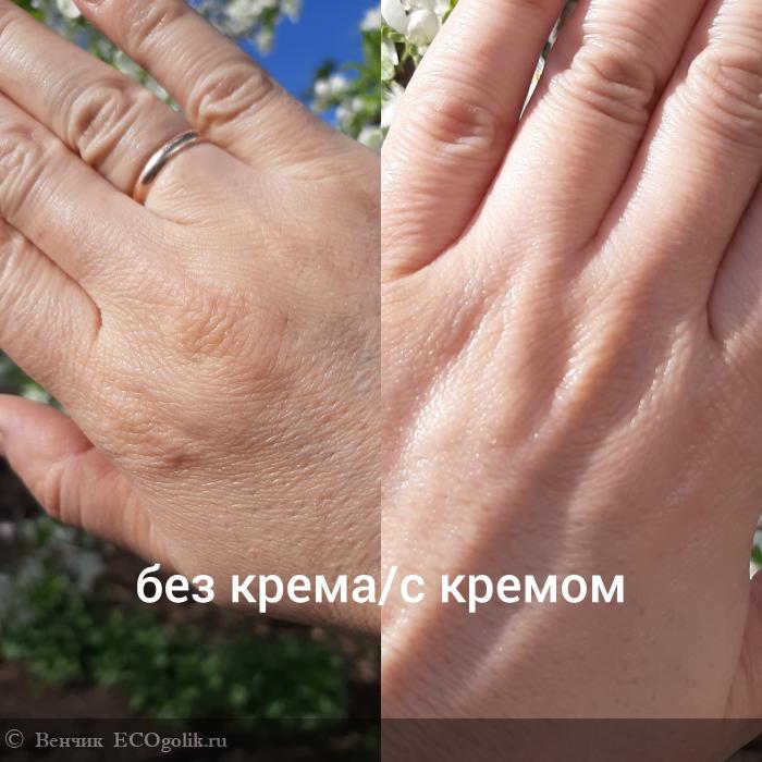 На коллаже итак все видно, кожа на правой руке без крема сморщенная, на левой, после крема напитанная и ухоженная, с жирностью не путайте.