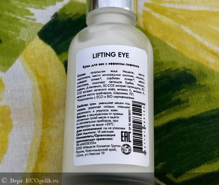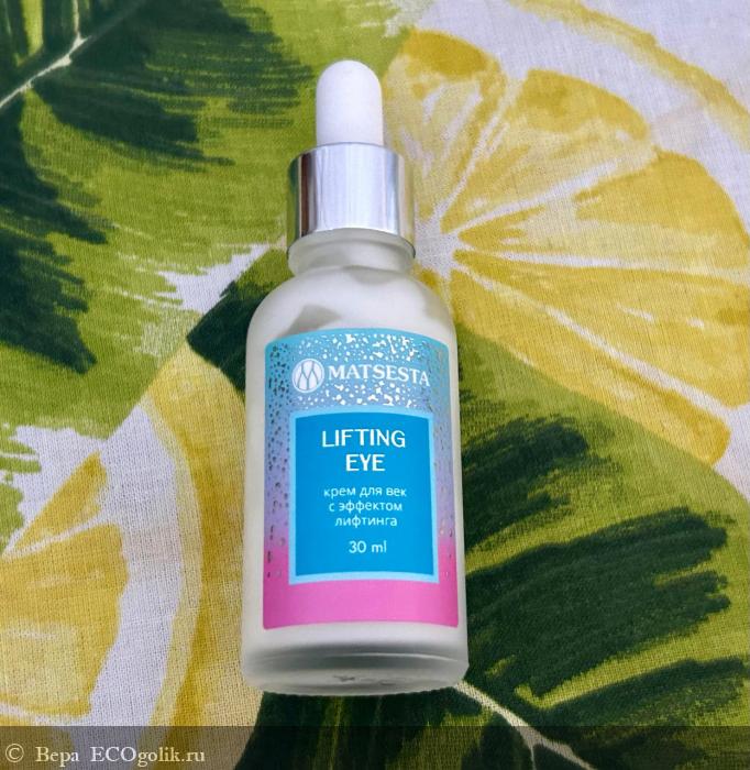 С появлением первых морщин под глазами я задумалась о более эффективных средствах для ухода вокруг глазами, нежели простой крем с алое. Поэтому сделала ставку на пептиды, заказав крем для век LIFTING EYE с эффектом лифтинга MATSESTA.