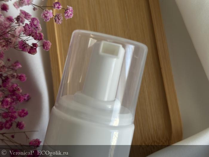 Подается пенка через помповый дозатор, который и преобразовывает жидкость во флаконе в нежнейшую мусс-пенку.
