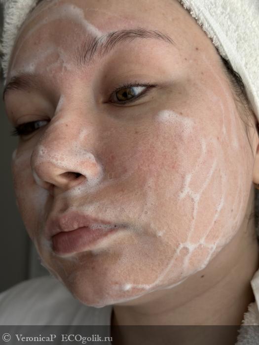 Процесс умывания превратился в приятный ритуал, приносящий ощущение комфорта и свежести. Наношу пенку на лицо и распределяю её по коже массажными движениями, затем смываю водой. Пенка легко смывается, не оставляя чувства стянутости или липкости.