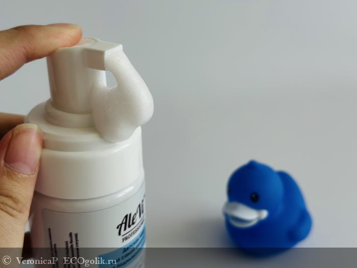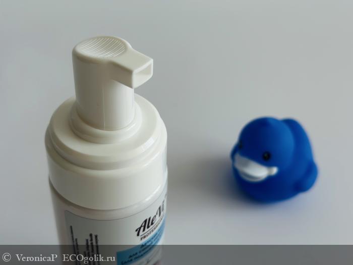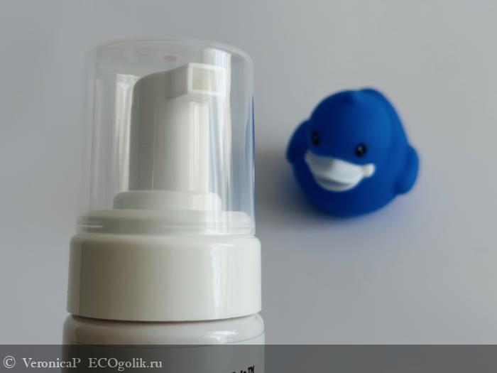 Подается пенка через помповый дозатор, который и преобразовывает жидкость во флаконе в нежнейшую мусс-пенку.