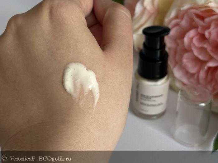 Крем имеет легкую, невесомую текстуру, которая быстро впитывается, не оставляя жирного блеска или липкости.