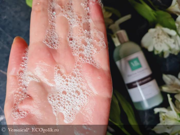 Хоть шампунь и безсульфатный, но он неплохо пенится и хорошо промывает волосы.