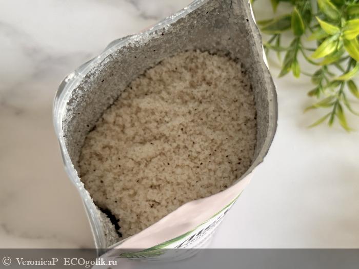 Скраб упакован в фольгированный пакет. Такой вид упаковки для меня является одним из самых удобных, потому что такой пакетик не занимает много места в ванной комнате, достаточно устойчивый и удобный в применении.