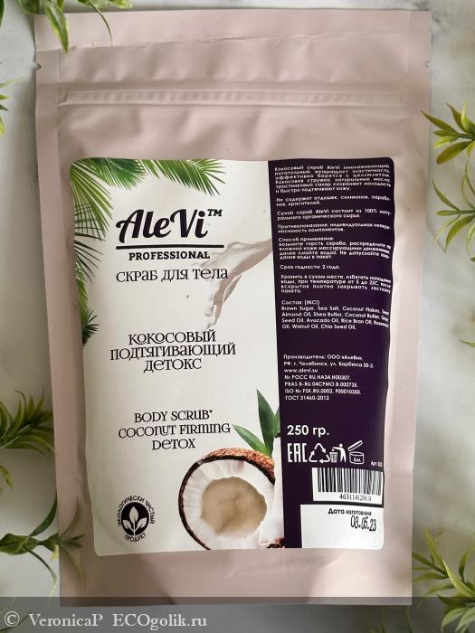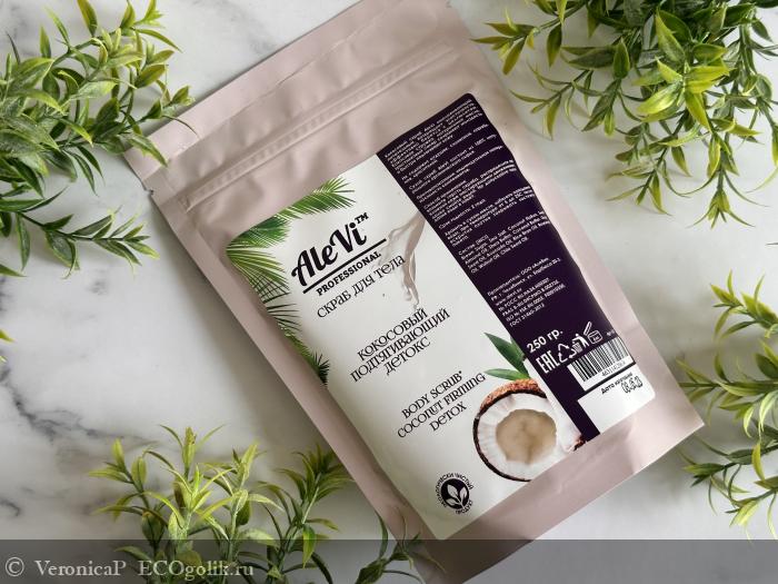 И в этом отзыве я хочу поделиться о своей классной находке от бренда AleVi – это Скраб для тела "Кокосовый подтягивающий детокс ".