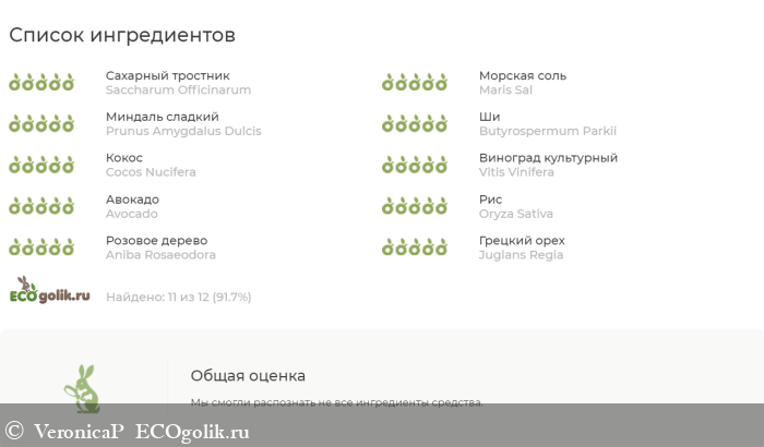 Отличный состав! Все компоненты успешно прошли проверку на натуральность через сервис Экоголик. Он не смог распознать только один компонент – масло семян чиа, но в его натуральности я не сомневаюсь.