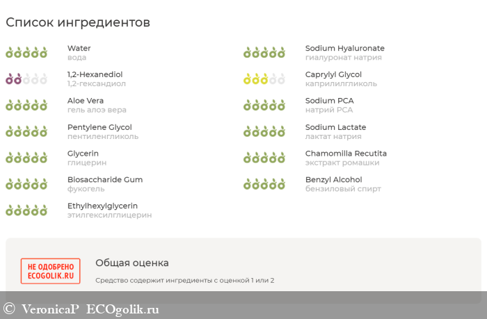 Среди компонентов был обнаружен 1,2-Гександиол | 1,2-Hexanediol. Он имеет синтетическое происхождение, применяется в качестве растворителя. В высоких дозах может вызывать аллергии и раздражение кожи и глаз. В допустимых концентрациях безопасен.