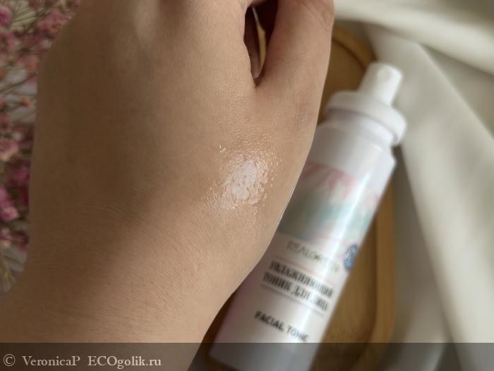 Тоник невероятно легкий, практически невесомый. Он мгновенно впитывается, не оставляя липкой пленки или чувства стянутости, что особенно важно для моей сухой кожи. После его использования кожа кажется бархатистой, гладкой, словно шелк.