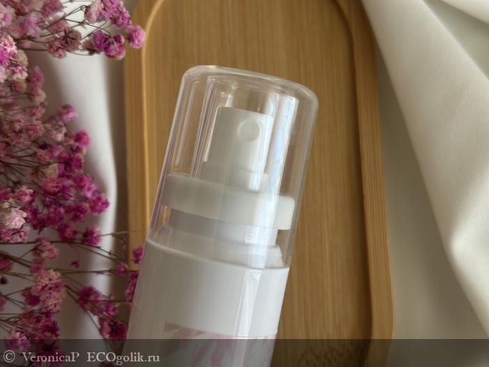 Оснащен он помповым дозатором-распылителем. Работает он исправно. Нажимается плавно, не плюется и не заедает, распыляет тоник мелкодисперсным облачком.