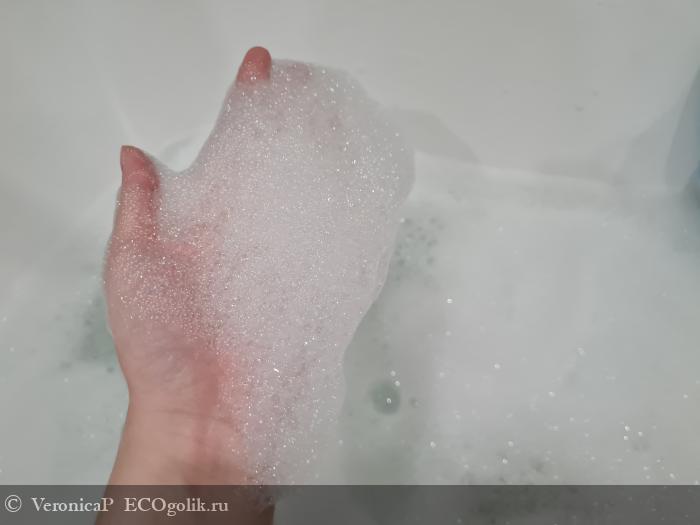 Пена действительно получается очень нежной и воздушной. Её так много! И она не оседает и не пропадает через 5 минут. Держится долго.