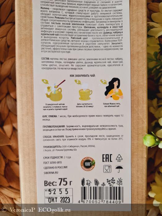 С наступлением холодов начинается сезон простуд и заболеваний. Я предпочитаю не дожидаться начала болезни и сразу укреплять свой иммунитет. И помогает мне в этом травяной чай «Противопростудный» с листьями малины и липовым цветом от SIBERINA.
