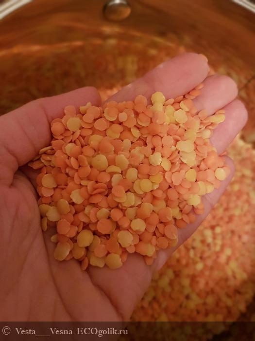 Красная чечевица - более легкая и нежная из всех бобовых, да и по вкусу нейтральная, поэтому какого-то ярко выраженного аромата, привкуса вы не почувствуете и реакция в виде вздутия на нее тоже крайне редка. Предварительно замачиваем чечевицу на ночь, но если нет времени, то достаточно будет и 30 минут. В среднем на одну стандартную тортилью понадобится 150 гр размоченной чечевицы.