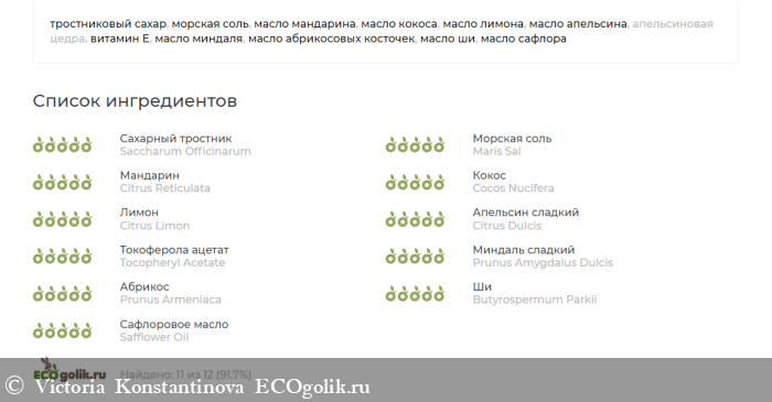 За ароматическую составляющую отвечают: масло мандарина, лимона и апельсина.