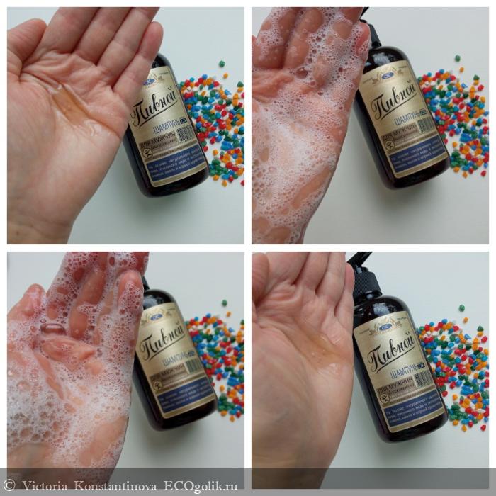 - Деликатно очищает волосы и кожу головы. Пчелиный мед и полисахариды, образующиеся в процессе варки пива, увлажняют волосы, придают им объем. Витамины (В1, В2, В6, РР), аминокислоты, протеины и минеральные вещества, содержащиеся в шампуне, улучшают структуру волос, возвращают им жизненную силу и придают блеск.