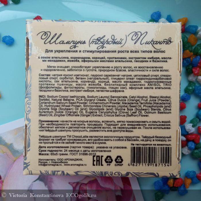 Мой шампунь "похудел" ровно в два раза. Из этого делаем вывод, что твердого шампуня Chocolatte хватает на 28-32 использований, что равно = 500 мл. расхода обычного жидкого шампуня.