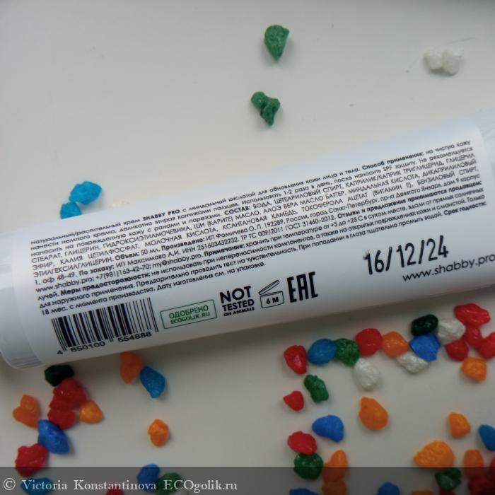 - Натуральный растительный крем SHABBY PRO с миндальной кислотой 3% предназначен для обновления кожи лица и тела. Этот крем обновляет, выравнивает, глубоко увлажняет и смягчает вашу кожу, делая её более гладкой. Он идеально подходит для кожи с постакне и фолликулитом, а также помогает в профилактике вросших волос. Крем уменьшает гиперкератоз и выравнивает текстуру и рельеф кожи лица и тела.
