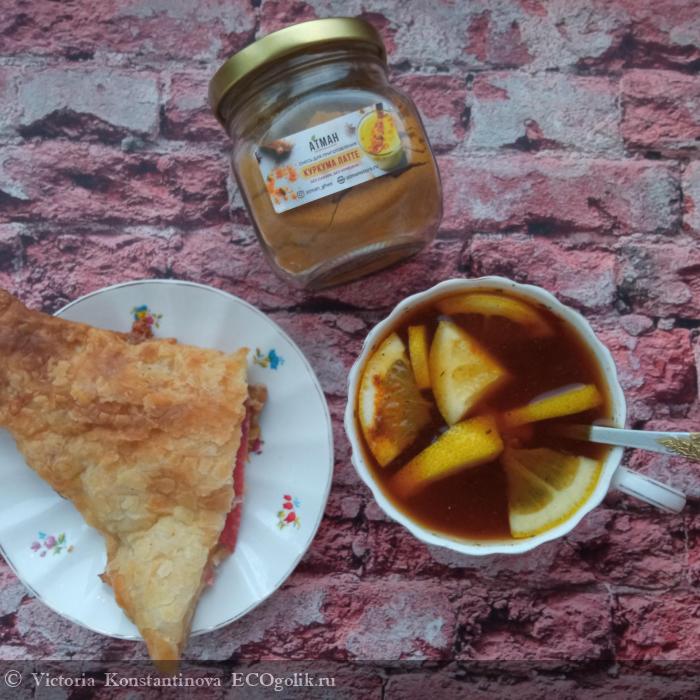Чай я не пью в пакетиках, только завариваю. Представьте: ароматный чай из смеси черного и зеленого, свежий сочный зимний лимон и куркума латте с ароматом корицы и апельсина! Такой чай, я пью дважды в день.