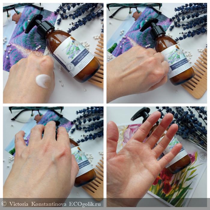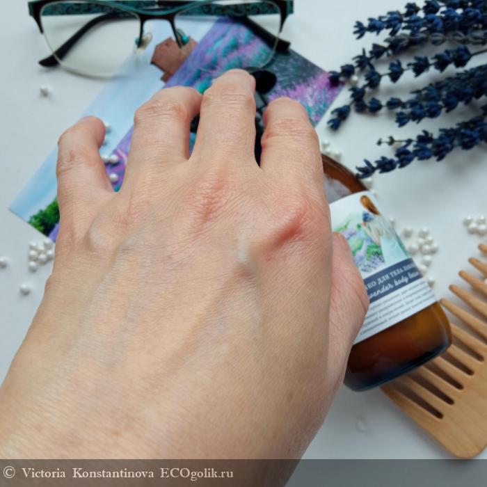 Несмотря на то, что это (казалось бы) молочко, посмотрите: оставляет легкий маслянистый след в первые 3-5 минут, после нанесения, который затем полностью исчезает. То есть - это молочко не пустышка! Оно не только сделано на гидролате лаванды, но и с добавлением полезных масел. Количество масел настолько сбалансированно, что эффект от использования молочка понравится всем! И тем, кто любит плотные баттеры и тем, кто предпочитает легкие текстуры.