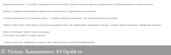 ХАРАКТЕРИСТИКА марсельского мыла: