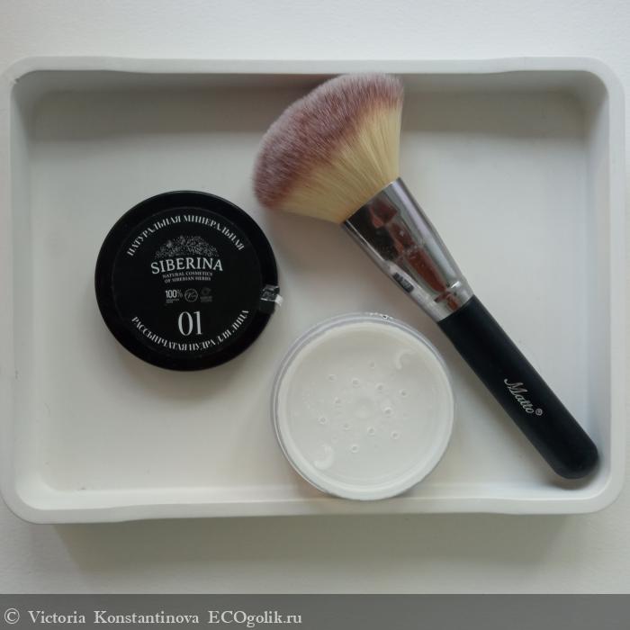 Пудра выглядит, как мука, но под воздействием кисти она растворяется на коже невидимой вуалью -
