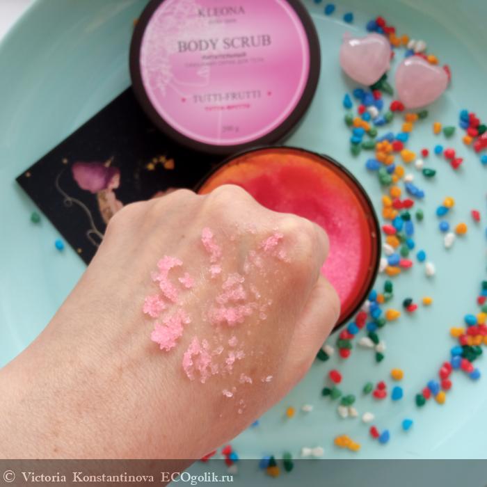 Запах скраба - это что-то нереальное! Kleona пошли дальше других производителей и стали использовали в новинках натуральные ароматизаторы, которые (скорее всего) используются в пищевых продуктах. Тот же гель " Дюшес " - аромат настоящей газировки из детства!